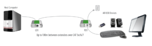 • Déport USB 1 port 2.0 et 1.1 sur CAT 5e/6 et 7 jusqu’à 100m