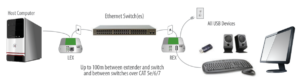 • Déport USB 1 port 2.0 ou 1.1 sur CAT 5e/6/7 jusqu’à 100m
